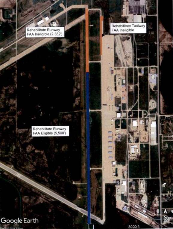 The Great Bend Municipal Airport has accrued Federal Aviation Administration (FAA) entitlement and Bipartisan Infrastructure Law (BIL) grants that are sufficient to fund 95% of a 2025 rehabilitation of Runway 17/35. The project is designed to crack-fill and slurry seal the runway, along with remarking the pavement.