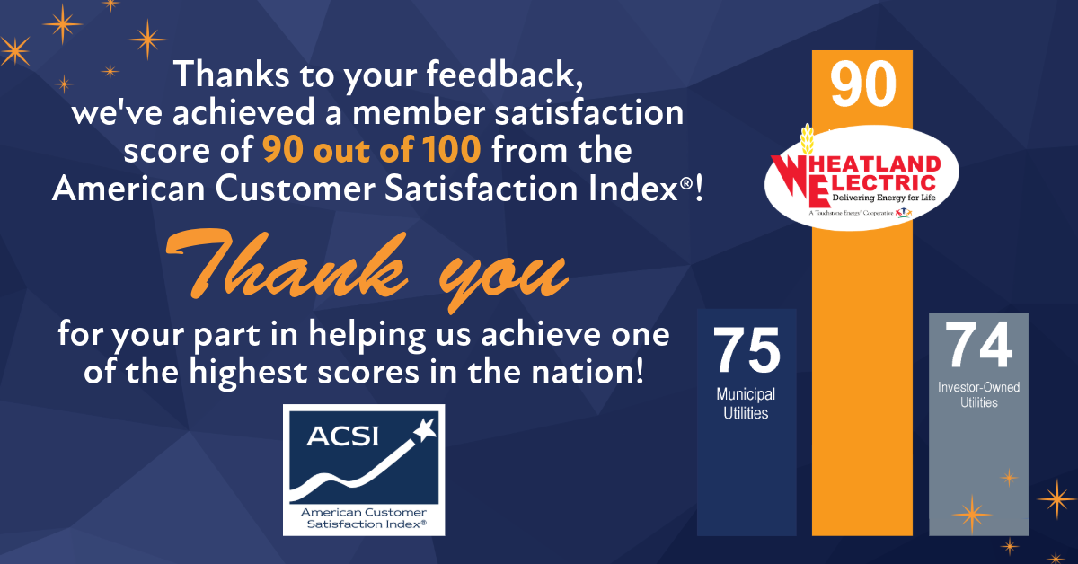 "Receiving an ACSI in the 90s for the second consecutive year is truly exciting for us,” said Bruce W. Mueller, CEO/general manager. “For several years, we've dedicated ourselves to enhancing member satisfaction through multiple programs and services including our capital credits program, new events for young adult members and families, by backing community projects through our Sharing Success Fund, and supporting local food banks through Cram the Van each fall. We’re here for our members, and their positive feedback is energizing!”