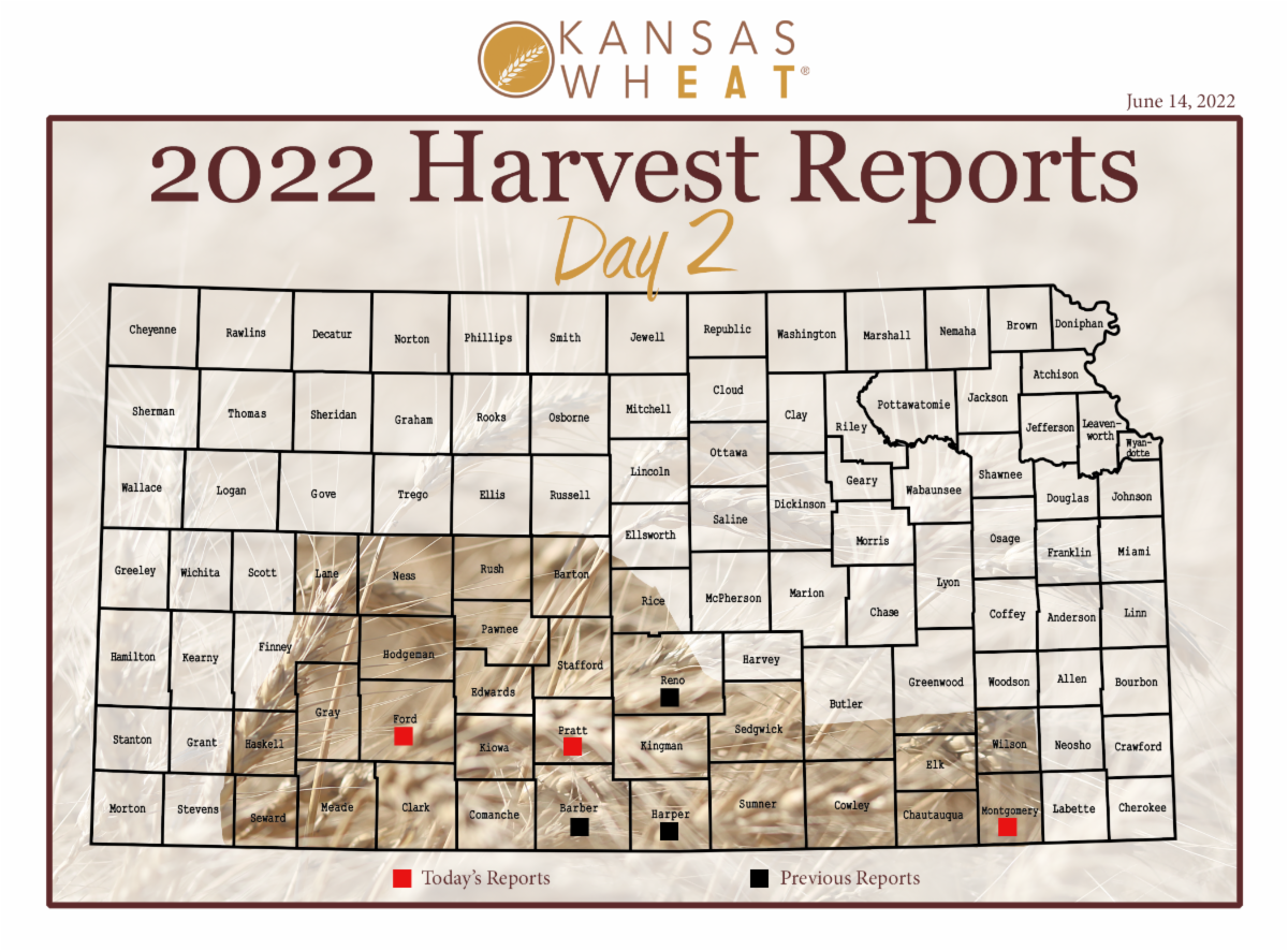 This is day 2 of the Kansas Wheat Harvest Reports, brought to you by the Kansas Wheat Commission, Kansas Association of Wheat Growers and the Kansas Grain and Feed Association.