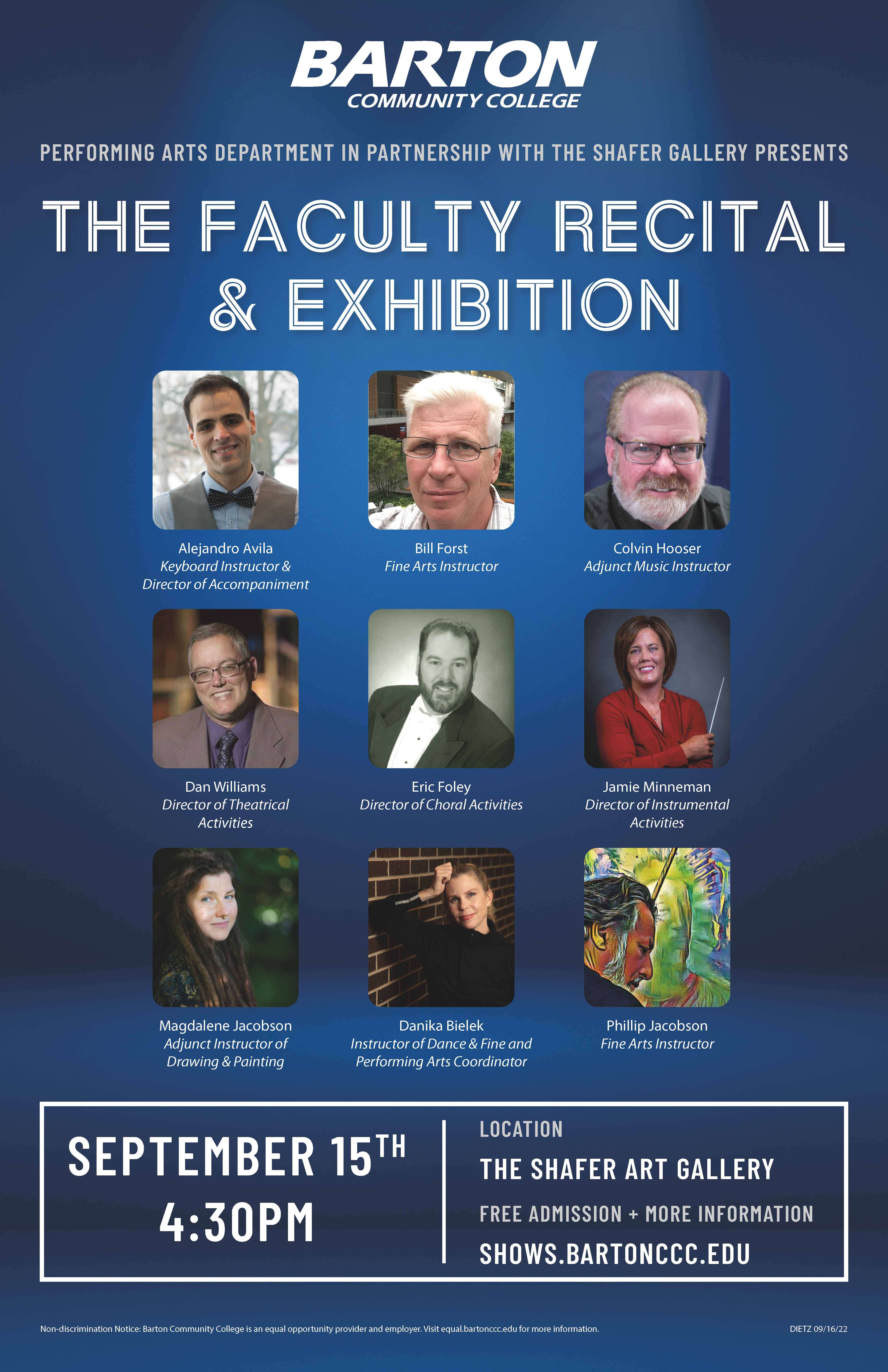 Barton's Fine and Performing Arts Department will join forces with the Shafer Art Gallery to present the Faculty Recital & Exhibition Sept. 15 at 4:30 p.m. in the Shafer Gallery. Admission is free.
